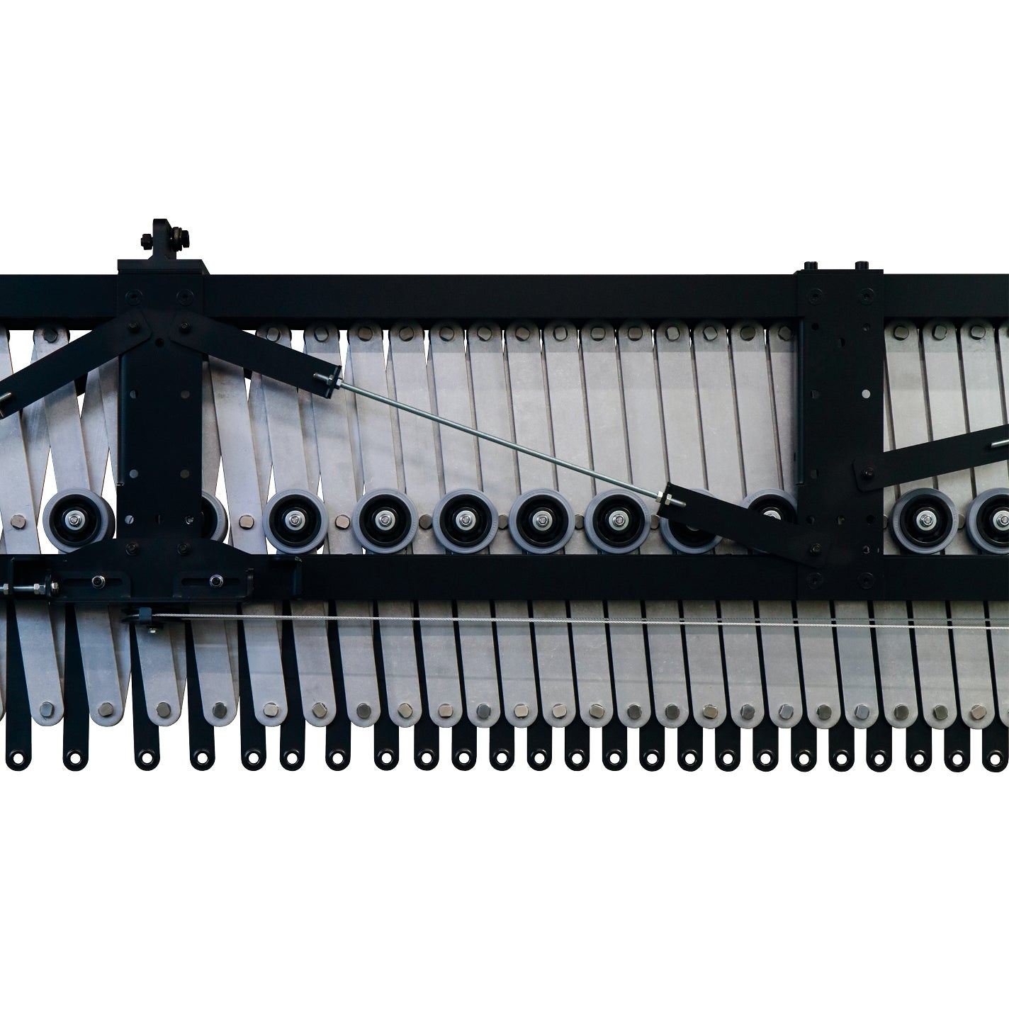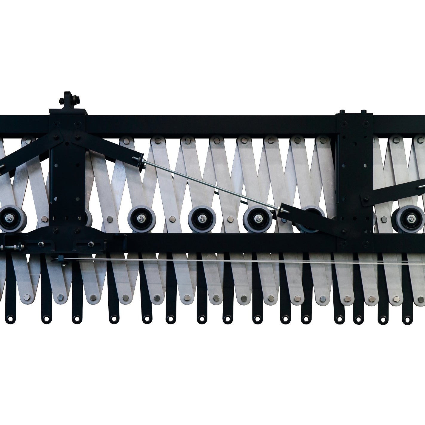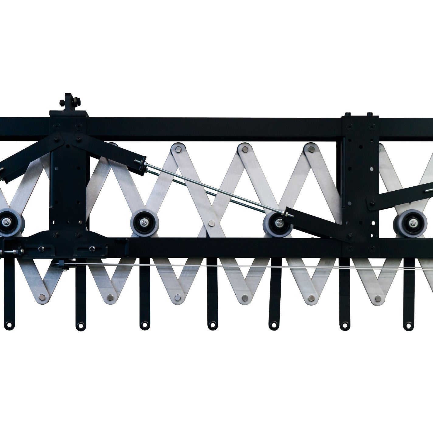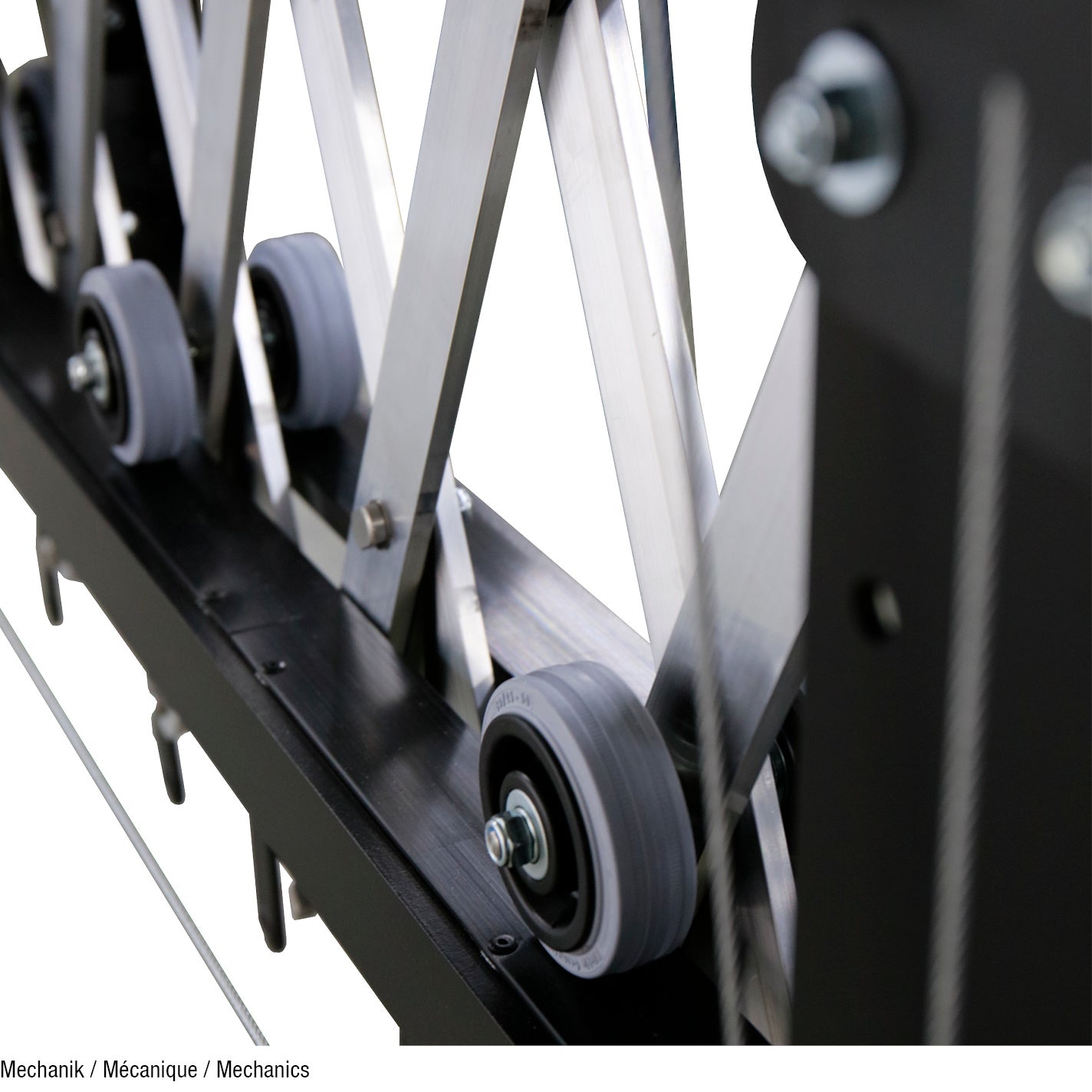 - Aufhängepunkte an jedem Scherenkreuz, Doppelrollen an jedem zweiten Kreuz
