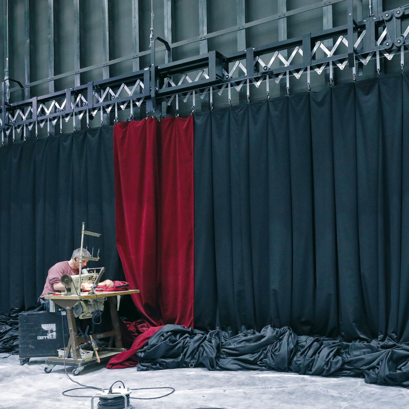 Erfahrung in der Verarbeitung und Bewegung schwerer Theater- und Opernvorhänge.