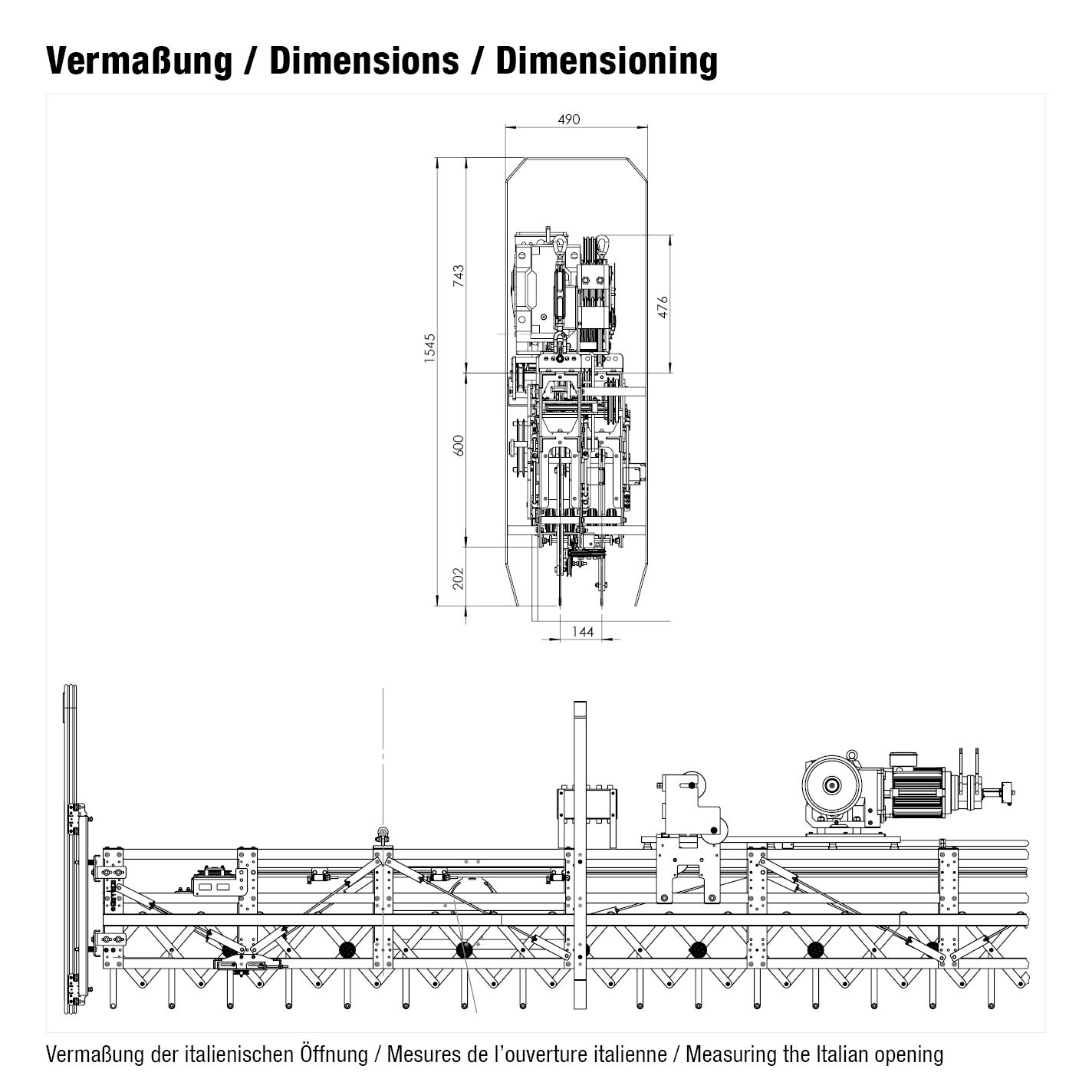 - Italienische Öffnung mit reibschlüssigem Antrieb
