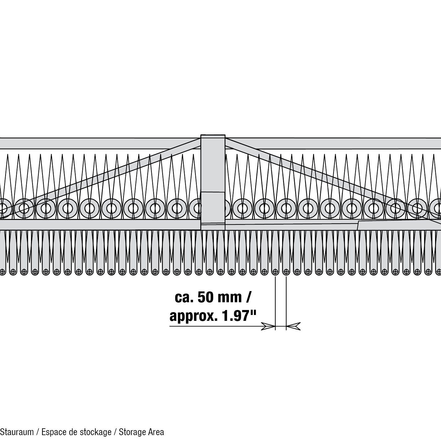 - Stauraumbedarf: ca. 170 mm pro 1 m Vorhangbreite (bei 300 mm Ösenabstand)