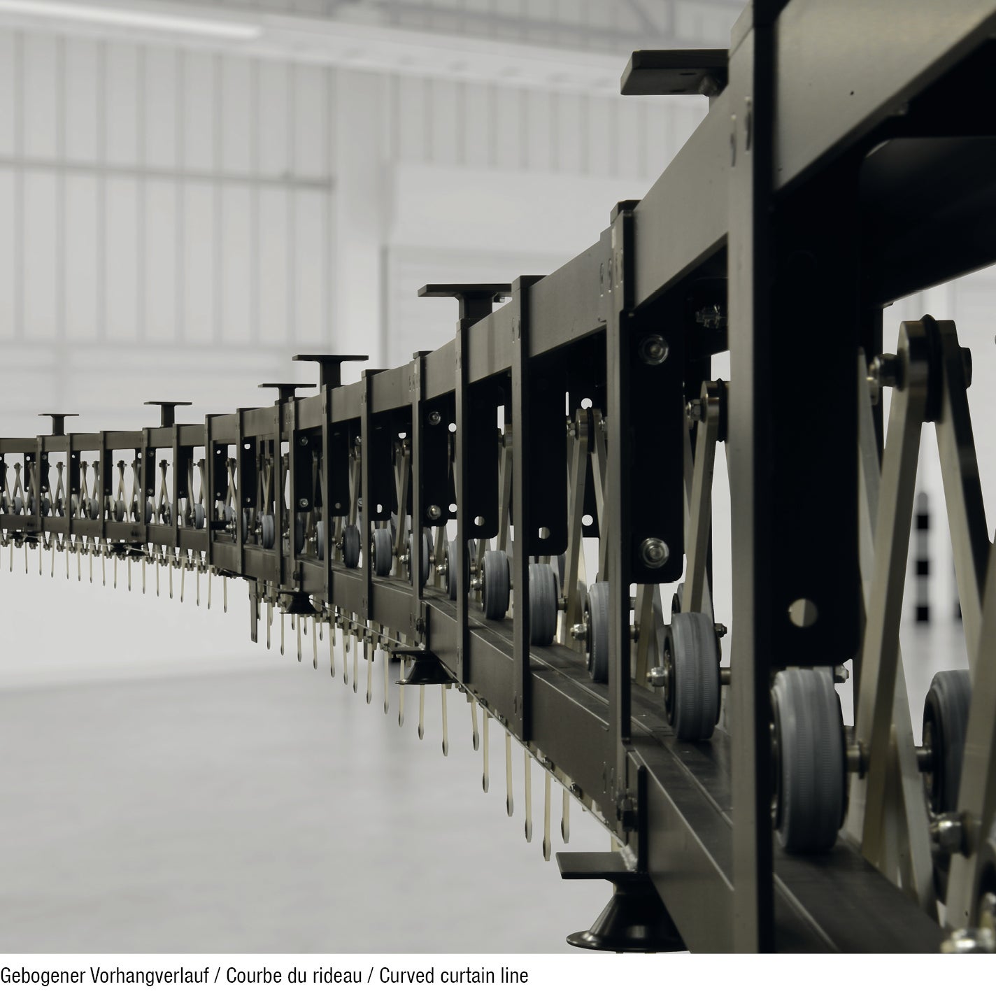 Die Konstruktion ist für große und schwere Vorhänge optimiert und sorgt sowohl bei griechischer als auch italienischer Öffnung für ein gleichmäßiges Faltenbild über die gesamte Breite.